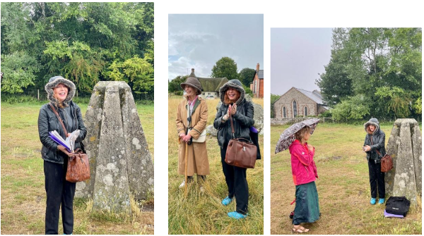 My second tour did not have an auspicious start, weather-wise. It was raining and continued raining and raining until just after lunch. Maria Wheatley had kindly agreed to take this second tour again. As before, we met Maria at 10.30. Maria is quite amazing and gallantly took us round, somehow adapting her talk with endless fascinating information despite the weather. ‘Did we want to continue?’ she asked, with rain dripping off her hood. So intrigued was everyone that, to a person, everyone said, ‘Yes, please continue.’ We were completely absorbed in everything she said and eagerly looking at all the illustrations and pictures which she had cleverly protected in plastic sleeves to keep them safe. She has a lovely sense of humour and, despite being thoroughly soaked, we all loved every moment.