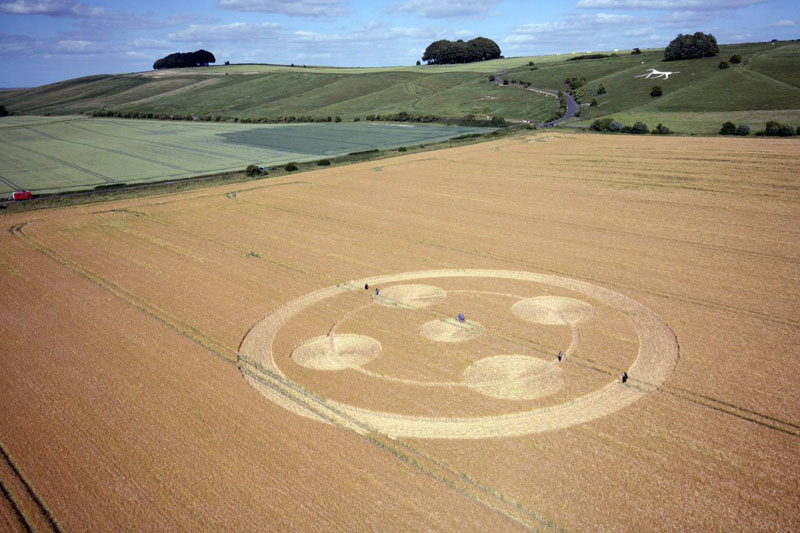 Returning to the crop circle, it lay in barley in the field below the chalk White Horse, a simple but most welcome one. Sadly the farmer harvested it out within 24 hours.