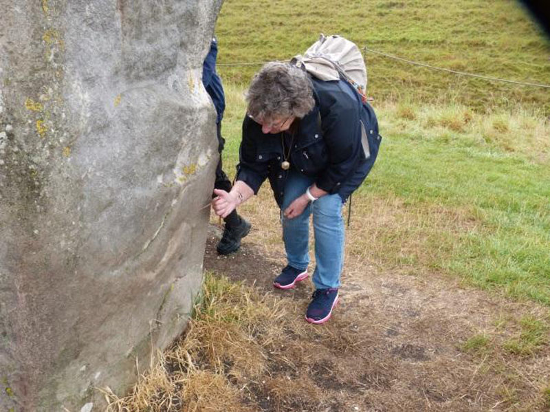 Maria is a true professional, and we were all hanging on her every word and eagerly looking at the written details and pictures she had brought with her to illustrate her talk. The detailed years’ history of Avebury and the explanation of the different energies of the various stones — and how this can be measured. Sometimes this energy can reveal itself in different bands moving up from the base of the stones. We could test these bands of subtle energy moving up the stones, as the rods reversed at the different levels. In addition, we were shown the different healing areas of several stones.