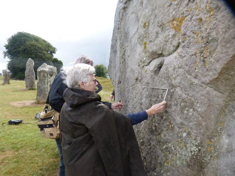 By the time they were taking place, sadly there were no circles available. However, it turned out to have been one of the happiest and most instructive of any tours I have had the privilege of taking. It was a perfect day and we all met, as usual, at the Silbury Hill car park. As in other years, we got into as few cars as possible and parked in Avebury car park. From there, we walked to the main street where we were meeting Maria Wheatley, who took us round the stones enthralling us with her in-depth knowledge and understanding of the area and illustrating her talk with diagrams and photographs; she enchanted us with the magic of Avebury. I recommended bringing dowsing rods (these can easily be made from a pair of metal coat hangers). “For nearly 30 years, author and researcher, Maria Wheatley, has researched megalithic sites across the world. Maria is a second-generation dowser and geomancer who is the UK’s leading authority on the geodetic earth energies, ley lines and grid lines.